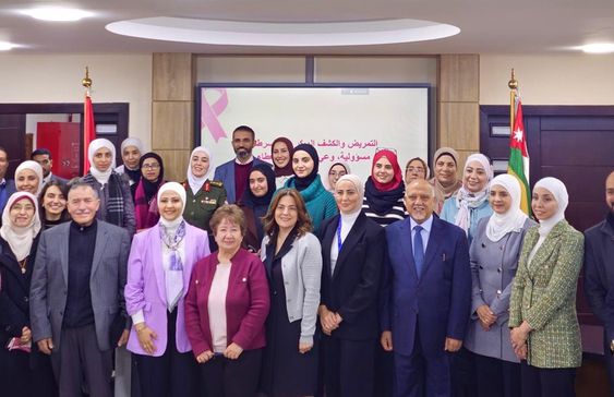 وأدارت الجلسة الدكتورة منتهى غريبة، وشارك مديرة البرنامج الوطني الأردني لسرطان الثدي الدكتورة ريم العجلوني، ومديرة التمريض في الخدمات الطبية الملكية العميد بسمة الزعبي، وعميد كلية التمريض في الجامعة الأردنية الدكتورة أريج عثمان، ومديرة مديرية التمريض في وزارة الصحة جهان عوض الله، ومديرة وحدة التمريض/العيادات الخارجية والكشف المبكر في مركز الحسين للسرطان سهاد فوزي.