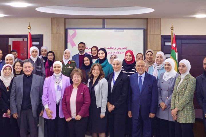 جاء ذلك خلال مشاركة النوافلة في جلسة حوارية نظمتها كلية التمريض في الجامعة الأردنية، بالتعاون مع البرنامج الوطني الأردني لسرطان الثدي ومركز الحسين للسرطان، بعنوان "التمريض والكشف المبكر عن السرطان: مسؤولية، وعي، وتميز في العطاء"، وذلك بحضور قيادات صحية وأكاديمية وتمريضية تمثل مختلف القطاعات ذات العلاقة.