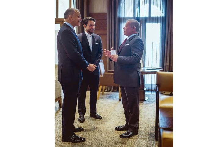 وأشار الديوان الملكي إلى أن جلالة الملك اجتمع مع سمو ولي العهد وسمو الأمير فيصل قبيل أحد الاجتماعات الدورية لمجلس السياسات الوطني لمتابعة أهم الملفات والقضايا.