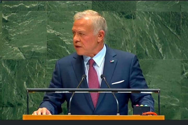 وقال جلالته، إن الذكرى الثمانين لتأسيس الأمم المتحدة تأتي بينما ما يزال العالم يجتمع سنويًا للتنديد بالظلم والعنف الناجمين عن الصراع الفلسطيني الإسرائيلي، والسعي لإيجاد حلول.