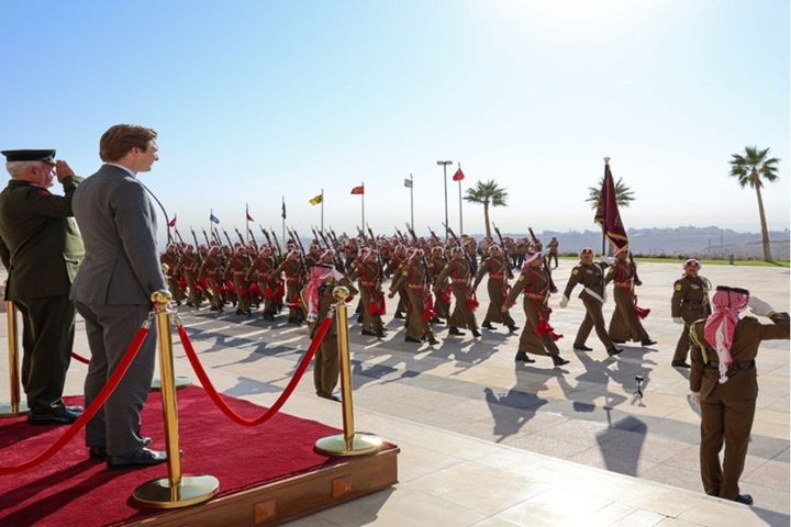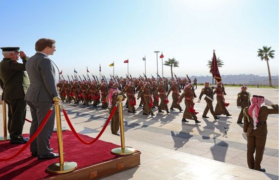 وجرت للضيف مراسم استقبال عسكرية، حيث استعرض حرس الشرف الذي اصطف لتحيته.