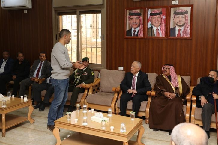 ففي منطقة أبو نصير بمحافظة العاصمة، نقل العيسوي، خلال زيارته بيت عزاء المرحوم اللواء الركن المتقاعد بهجت عسيم الجلامدة، تعازي ومواساة جلالة الملك وسمو ولي العهد إلى ذوي الفقيد وعموم عشيرة الجلامدة، سائلاً المولى عز وجل أن يتغمده بواسع رحمته.