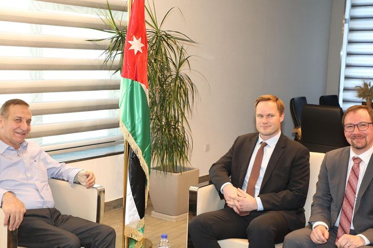 وناقش الخريسات مع الوفد الألماني سير العمل في مشروع "الوظائف الخضراء" الذي تنفذه الوزارة بدعم من بنك الإعمار الألماني، بقيمة 14.5 مليون يورو، ولمدة أربع سنوات، ويهدف إلى خلق 3000 فرصة عمل من خلال برنامج "النقد مقابل العمل".