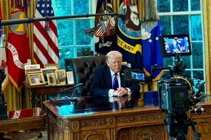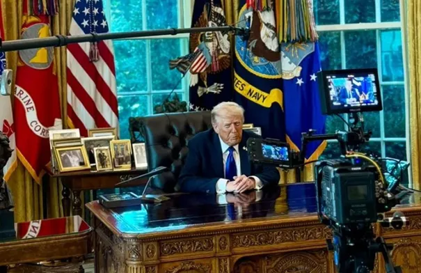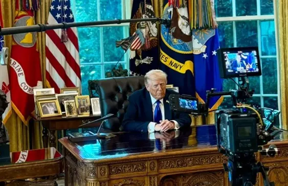 وقالت المتحدثة باسم الرئاسة الأميركية كارولاين ليفيت على منصة إكس "في أروقة المكتب البيضوي، يرد الرئيس ترامب على قبول حركة حماس بخطته للسلام" التي تحظى بدعم إسرائيل، مرفقة ذلك بصورة للرئيس الأميركي جالسا الى مكتبه، محاطا بأجهزة تصوير وصوت.