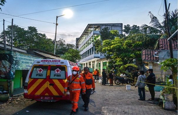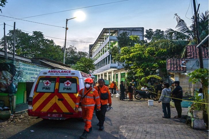 وانهار جزء من المدرسة الداخلية المتعددة الطوابق في جزيرة جاوة فجأة، يوم الاثنين، أثناء تجمع الطلاب لأداء صلاة العصر.