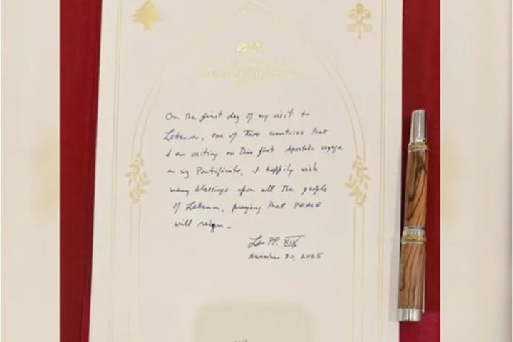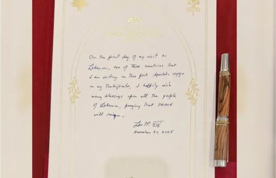 وكتب البابا: "في اليوم الأول من زيارتي إلى لبنان، أحد البلدين اللذين أزورهما في هذه الرحلة الرسولية الأولى في حبريّتي، أتمنى بفرحٍ بركات كثيرة لجميع شعب لبنان، مصليًا أن يسود السلام".