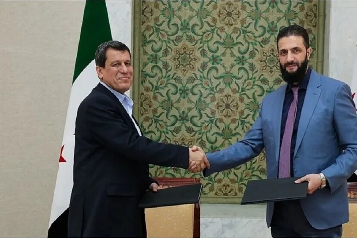 وأوضح الشرع في مقابلة مع صحيفة واشنطن بوست: "أرى أن الحل الأمثل هو أن تُسنَد مهمة الإشراف على عملية الدمج إلى القوات الأمريكية المتمركزة في سوريا، بينما تتحمل الدولة السورية وحدها مسؤولية حماية أراضيها وتأمين سيادتها."