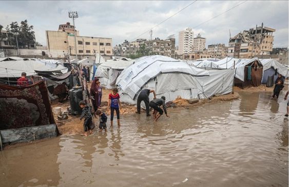 غرق خيام النازحين جراء الأمطار في غزة