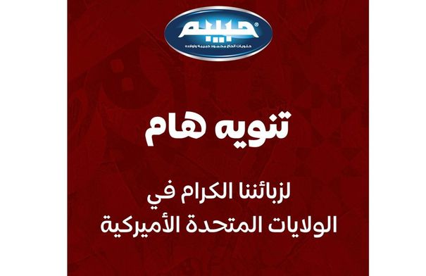 •شركة الحاج محمود حبيبه وأولاده لا تتحمّل أي مسؤولية عن جودة أو سلامة أو مكونات أي منتج يُعرض أو يُباع داخل الولايات المتحدة تحت اسم “حبيبه” أو أي تسمية مشابهة.