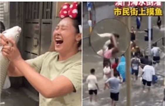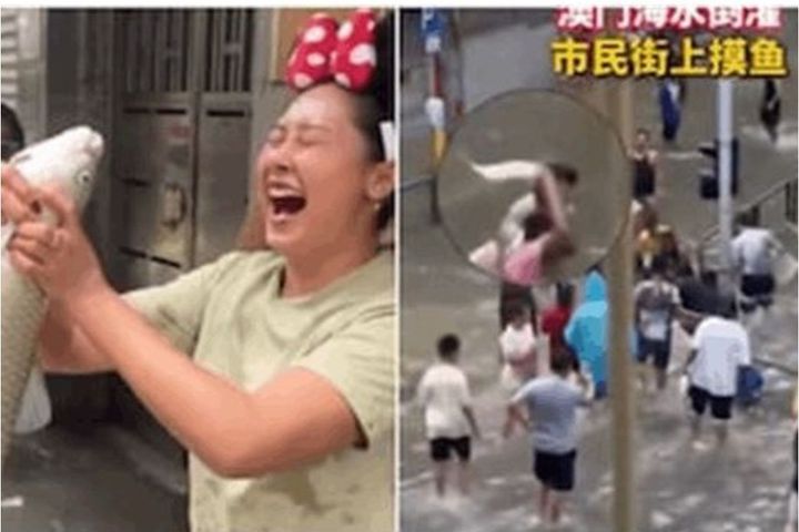 وأظهر مقطع نشرته صحيفة "شنغهاي ديلي" سكانًا يجمعون الأسماك ويحملونها على دراجاتهم، بينما التقط آخرون صورًا ذاتية (سيلفي) مع صيدهم غير المتوقع.