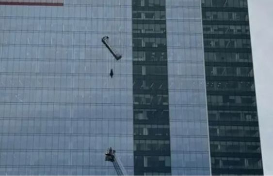عملية إنقاذ تحبس الأنفاس لعاملي تنظيف نوافذ في أمريكا