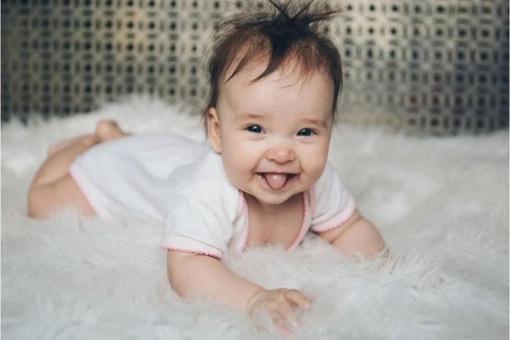الأطفال يحبون تقليد الأهل، وإخراج اللسان قد يكون طريقة للتواصل والمرح.