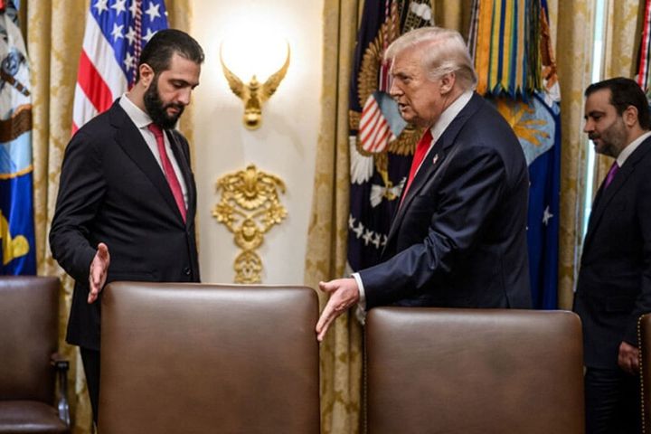 وفي المقابل، قدّم الرئيس السوري الانتقالي مجموعة من الهدايا الرمزية لترامب، تضمنت "أول أبجدية في التاريخ"، و"أول ختم"، و"أول نوتة موسيقية"، و"أول تعريفة جمركية"، في إشارة إلى الإرث الحضاري السوري القديم.