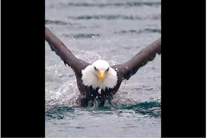 مصوّر يتمكن من التقاط لقطة مثالية للحظة انقضاض صقر على فريسته في الماء